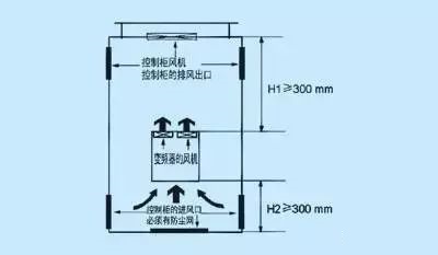 (3) 如果采用控制柜頂部側面排風方式,出風口必須安裝防護網。