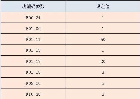 由于塑料壓鑄機(jī)對(duì)變頻器的性能要求較高,需具備指令響應(yīng)迅速,能夠長(zhǎng)時(shí)間持續(xù)穩(wěn)定運(yùn)行。采用SKI600后,能夠根據(jù)設(shè)備運(yùn)行情況,數(shù)據(jù)設(shè)定加速2秒,減速0.2秒,中速可調(diào)0~60HZ,高速60HZ,低速5HZ運(yùn)行。參數(shù)設(shè)置: